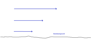 • Die Strömungsgeschwindigkeit ist am höchsten, wo das Gewässer am tiefsten ist.
