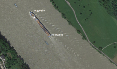 - Heckwelle: in spitzem Winkel vom Bug ausgehend