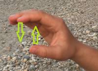 Durch Anheben des Handgelenks gelangen die Ruder ins Wasser (links). Das Ruder wird dabei von Zeigefinger und Daumen geführt wie beim Schnippen mit den Fingern.